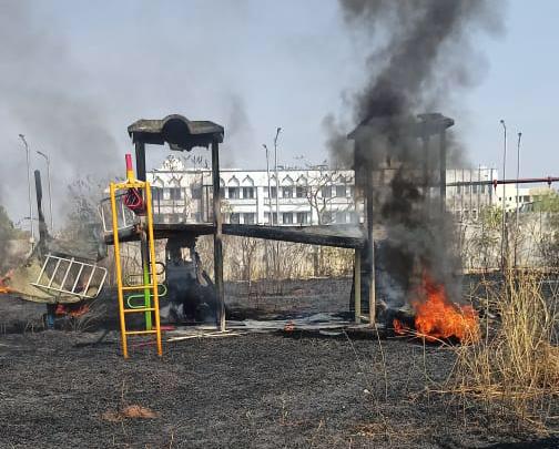 कळमनुरी नगरपालिकेच्या वतीने तीन ते चार कोटी रुपये खर्च करून गार्डन तयार केले. मात्र अजूनही हे गार्डन नागरिकांसाठी खुले करण्यात आले नव्हते. कळमनूरीकरांसाठी विरंगुळा म्हणून गार्डन तयार केले. या गार्डनमध्ये लहान मुलांच्या खेळण्याचे साहित्य, महाग मोलाची झाडे लावली होती. मात्र बुधवारी लागलेल्या आगीत खेळण्याचे साहित्य, किमती झाडे, व इतर साहित्य जळून खाक झाले आहेत. यामध्ये माेठे नुकसान झाले आहे.