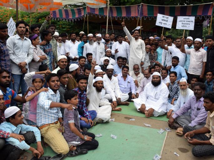 हिंगोली : मुस्लिम आरक्षण संघर्ष समिती तर्फे ७ आॅगस्ट रोजी जिल्हा कचेरीसमोर धरणे आंदोलन करण्यात आले. मुस्लिम समाजाला आरक्षण देण्यात यावे या मागणीचे निवेदन जिल्हाधिकाऱ्यांमार्फत मुख्यमंत्र्यांना सादर करण्यात आले.धरणे आंदोलनात जिल्हाभरातून मोठ्या संख्येने मुस्लिम समाजबांधव सहभागी झाला होता. यावेळी मान्यवरांची भाषणे झाली. आरक्षण देण्याच्या मागणीचे फलक युवकांच्या हाती दिसून येत होते. राज्य शासनाने २०१४ साली मुस्लिम समाजाला ५ टक्के आरक्षण जाहीर केले होते. त्यासंबधी उच्च न्यायालय खंडपीठ येथे जनहित याचिका दाखल केली असता, न्यायालयाने मुस्लिम समाजाला ५ टक्के आरक्षण शैक्षणिक, आर्थिक व सामाजिक प्रगतीसाठी गरजेचे असल्यामुळे मान्य केले होते. उच्च न्यायालयाने मुस्लिम समाजाच्या शैक्षणिक, आर्थिक व सामाजिक सर्वेक्षणासाठी केंद्र सरकारने नियुक्त केलेल्या जगन्नाथ मिश्रा आयोग, महेमुदूर रहेमान आयोग व न्यायमुर्ती राजेंद्र सच्चर यांच्या सच्चर समिती शिफारशीनुसार मुस्लीम समाज आज रोजी मागासवर्गीयांचाही पलीकडे गेलेला असल्यामुळे त्यांना जीवन जगण्यासाठी वरील प्रमाणे आरक्षण गरजेचे असल्याचे मत उच्च न्यायालयने दिले आहे. मागील सरकारने मुस्लिम समाजाला दिलेल्या आरक्षणाचे उच्च न्यायालयाच्या आदेशनुसार कायद्यात तरतूद करून अंमलबजावणी करणे सरकारचे कर्तव्य आहे. परंतु ते मागील दोन वर्षांपासून प्रलंबितच आहे. त्यामुळे मुस्लिम समाजाला तात्काळ ५ टक्के आरक्षण देऊन अंमलबजावणी करण्याची मागणी यावेळी करण्यात आली. शासनाने जर मागणी मान्य न केल्यास आंदोलने सुरूच राहतील असा इशारा आरक्षण संघर्ष समितीच्या वतीने देण्यात आला आहे. यावेळी पोलिसांचा कडेकोट बंदोबस्त होता. प्रशासनास सादर केलेल्या निवेदनावर मौलाना जुनेद दूर रहेमान कासिम, मौलाना एजाज बैती, मुक्ती शफीक रहेमानी, मुक्ती काजी फईम, मौलाना नुरूल हसन, मौलाना अ. रहेमान रजवी यांच्यासह समितीच्या पदाधिकाºयांच्या स्वाक्षºया आहेत.
