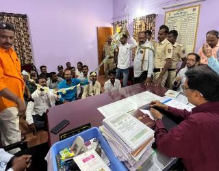 हिंगोली : बोगस खत विक्री प्रकरणी कारवाई करा, अधिकाऱ्यांसाठी शेतकऱ्यांनी आणला नोटांचा हार