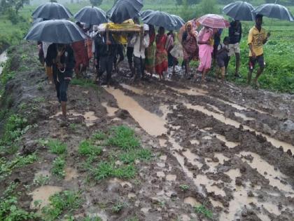 गर्भवतीस खाटेवर बसवून 3 ते 4 किमी चिखल तुडवत गावाबाहेर आणले.