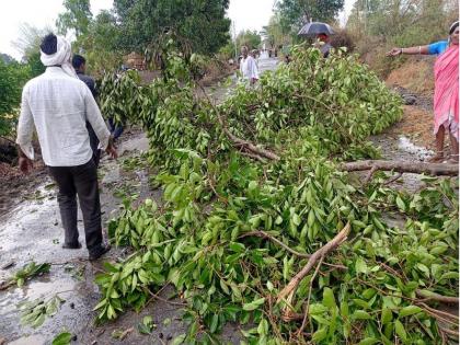 हिंगाेली : जिल्ह्यातील विविध भागात दुपारी २ ते सायंकाळी ६ वाजेच्या सुमारास कुठे जोरदार, तर कुठे तुरळक अवकाळी पावसाने हजेरी लावली. यामुळे हळदीसह आंब्याचे नुकसान झाल्याचे दिसून आले, तर डिग्रस कऱ्हाळे येथे वादळी वाऱ्यामुळे झाडे पडल्यामुळे वाहतूक खाेळंबली हाेती.
