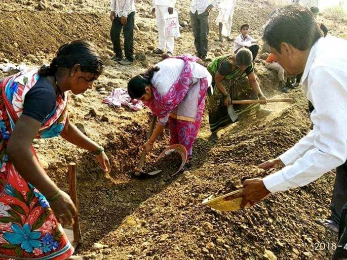 लोकमत न्यूज नेटवर्कआखाडा बाळापूर : वॉटर कप स्पर्धेसाठी गावागावात आता श्रमदानासाठी जुंपल्याचे चित्र पहावयास मिळत आहे. प्रशासकीय अधिकाऱ्यांनीही या कामा सहभागी वाढविला आहे. भुरक्याची वाडी येथे तहसीलदार डॉ. प्रतिभा गोरे यांनी सकाळी सात वाजताच हजेरी लावत माळरानावरील खोदकामात हातात फावडे टिकास घेऊन श्रमदान केले.कळमनुरी तालुक्यातील गावागावात पाणी पाऊंडेशनच्य स्पर्धेअंतर्गत कामांना प्रारंभ झाला आहे. भुरक्याची वाडी येथील ग्रामस्थांनी एकजुटीने प्रदर्शन करत श्रमदान हिरीरीने भाग घेतला. ग्रामसेवक माळोदे यांनी कामाचे नियोजन करून पूर्णवेळ ग्रामस्थासोबत कामात सहभाग व मार्गदर्शन सुरू केले. जि.प. सदस्य डॉ. सतीश पाचपुतेसह इतर पदाधिकाºयांनी वेळोवेळी कामात सहभाग नोंदविला. गावाचे काम अग्रेसर असल्याने प्रशासकीय अधिकाºयांनीही कामास भेटी देऊन मार्गदर्शन केले. तहसीलदार डॉ. प्रतिभा गोरे यांनी १४ एप्रिल रोजी सकाळी ७ वाजताच गावात हजेरी लावली. माळरानावर माथा ते पायथा सुरू असलेल्या डीप सीसीटीच्या कामात सहभाग नोंदवत हातात कुदळ, फावडे घेतले.केवळ फोटोसेशन न करता दोन तास श्रमदान केले. त्यांच्या या श्रमदानामुळे ग्रामस्थांना प्रेरणा मिळाली व कामाची गती वाढली.