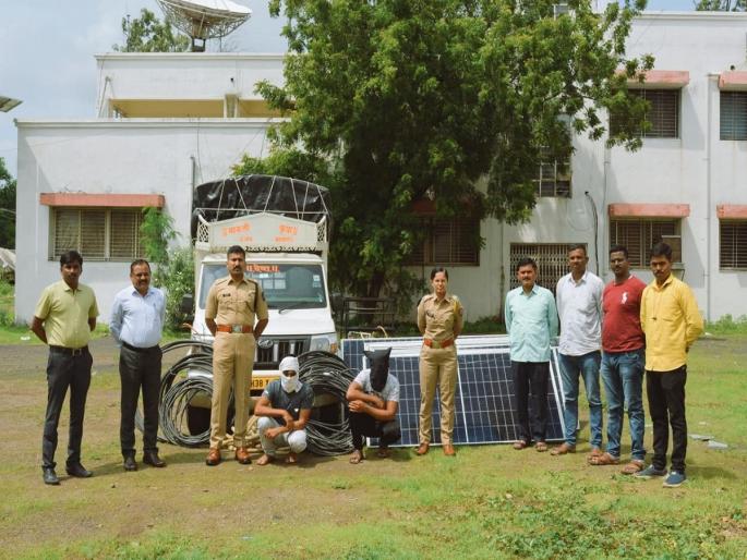 या घटनेतील चोरटे हे औंढा ना. तालुक्यातील येळी येथे असल्याची माहिती पथकाला मिळाली होती. त्यावरून पथकाने गंगाधर नारायणराव सांगळे व बालाजी विठ्ठल घुगे (दोघे रा. येळी) यांना ताब्यात घेतले. त्यांना विचारपूस केली असता त्यांनी दोन्ही ठिकाणी चोरी केल्याची कबुली दिली. त्यांच्याकडून पोलिसांनी तांब्याचे केबल, दोरीचे बंडल, १४ सोलार पॅनल तसेच एक पीकअप वाहन असा एकूण १२ लाख २ हजार ५०० रूपयांचा मुदृदेमाल जप्त केला. दोघांनाही हिंगोली ग्रामीण पोलिसांच्या ताब्यात देण्यात आले.