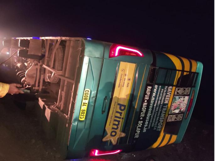 आखाडा बाळापूर ( हिंगोली ) : नांदेड-हिंगोली महामार्गावर जामगव्हाण पाटीजवळ रायपूर (छत्तीसगड) येथून सोलापूरकडे कामासाठी जाणाऱ्या कामगारांची खाजगी बस उलटून झालेल्या अपघातात १५ कामगार जखमी झाले आहेत. सोमवारी पहाटे पाच वाजता हा अपघात झाला आहे. जखमींना नांदेड येथील शासकिय रुग्णालयात हलविण्यात आले असून पाच कामगाराची प्रकृती गंभीर असल्याचे पोलिसांनी सांगितले