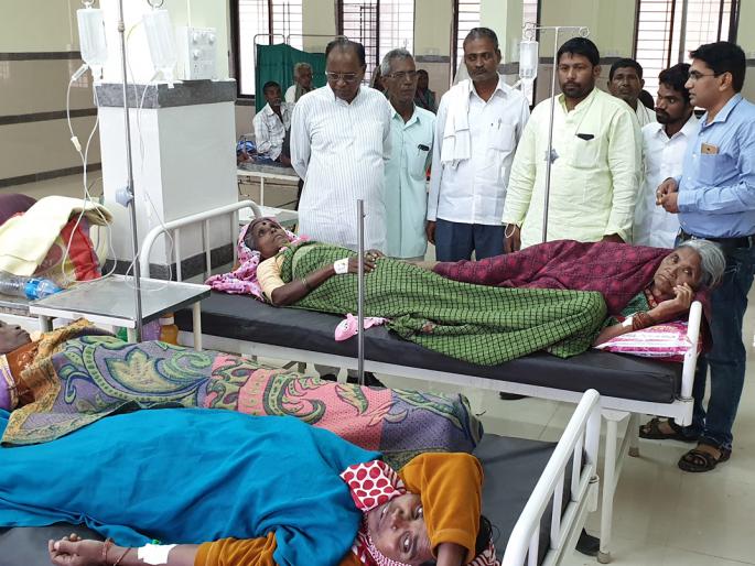 लोकमत न्यूज नेटवर्कहिंगोली : मोंढ्यात रोजंदारीने काम करणाऱ्या महिलांना कामावरून काढून टाकले. त्यामुळे कृषि उत्पन्न बजार समिती हिंगोलीच्या मोंढ्यात काम करू द्यावे या मागणीसाठी २७ आॅगस्टपासून जिल्हाकचेरी समोर उपोषण सुरू केले आहे. उपोषणाचा शुक्रवारी सहावा दिवस होता. यातील सात उपोषणकर्त्या महिलांची बुधवारी प्रकृती खालावली होती. तापाने फणफणलेल्या उपाषणकर्त्या महिलांवर जिल्हा रूग्णालयात उपचार सुरू आहेत. महिलांची आ. रामराव वडकुते यांनी भेट घेऊन विचारपूस केली.हिंगोली कृषि उत्पन्न बाजार समिती मोंढा परिसरात काम करणाºया महिला मागील काही महिन्यांपासून कामावर परत घ्यावे यासाठी उपोषण करीत आहेत. केले. परंतु तोडगा निघाला नाही. त्यामुळे जवळपास ५० महिला जिल्हा कचेरीसमोर उपोषणास बसल्या आहेत. मागील चाळीस वर्षांपासून या महिला कामगार मोंढ्यात तुटपुंज्या मोबदल्यावर काम करत. उपचारासाठी पारूबाई हानवते, लीलाबाई घोडे, शोभाबाई डाखोरे, गयाबाई कांबळे, मथुराबाई हातागळे, हरणाबाई गजभार, कौशल्याबाई देवकते या महिलांवर उपचार सुरू आहेत.कृऊबाचे आडमुठे धोरण...महिलांना कामावरून काढून टाकण्यात आले हे कृऊबाचे आडमठे धोरण आहे. महिलांच्या उपजीविकेचा प्रश्न निर्माण झाला आहे. त्यामुळे आ. वडकुते यांनी जिल्हाधिकाºयांची भेट घेऊन मार्ग काढण्याची मागणी केली. तोडगा काढण्यासाठी व्यापारी तयार असतील तर कृऊबा व व्यापाºयांची संयुक्त बैठक घेऊ व मार्ग काढण्यासाठी प्रयत्न करून असे आ. वडकुते यांना जिल्हाधिकाºयांनी सांगितले.