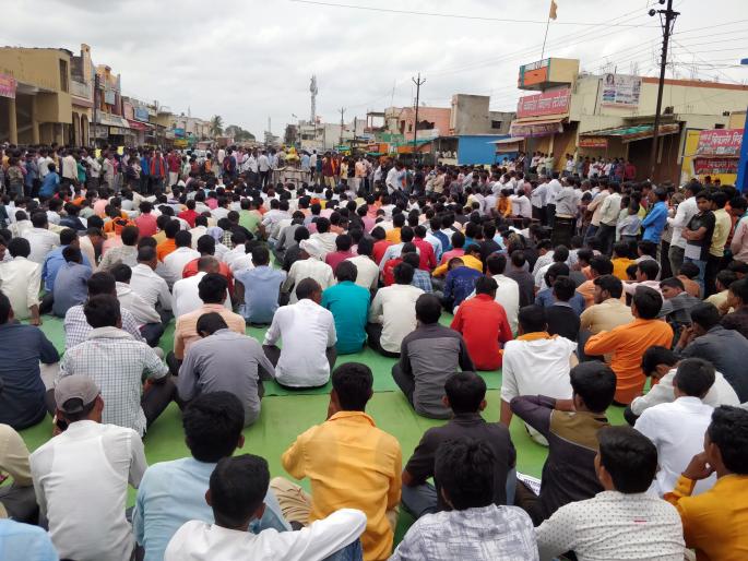 लोकमत न्यूज नेटवर्कआखाडा बाळापूर : मराठा आरक्षणाच्या मागणीसाठी आखाडा बाळापूर येथे राष्टÑीय महामार्गावर अडीच तास रास्तारोको आंदोलन करण्यात आले. येथे आलेल्या आ. रामराव वडकुते यांना भाषण करण्यास मज्जाव केला व तेथून हुसकावले. दाती फाटा येथे एक ट्रक जाळून टाकला. एरिगेशन कॅम्प येथील उर्ध्व पैनगंगा प्रकल्प कार्यालय डिव्हीजन चारमध्येही काही जणांनी तोडफोड केली. पेट्रोल टाकून संगणक संच जाळून टाकले. रस्त्यावर टायर जाळले. झाडे तोडून टाकून रस्ता वाहतूक बंद केली.मराठा समाजाला आरक्षण मिळावे, या मागणीसाठी आखाडा बाळापूर येथील नवीन बसस्थानकासमोर नांदेड- हिंगोली महामार्गावर तब्बल अडीच तास रास्तारोको आंदोलन करण्यात आले. या रास्तारोको आंदोलनादरम्यान आ. रामराव वडकुते तेथे आले. भाषणासाठी त्यांचे नाव पुकारताच आंदोलकांनी एकच गोंधळ घालून त्यांना भाषण करण्यास मज्जाव केला. आंदोलक त्यांच्या अंगावर धावून गेले. जमावातून त्यांना पोनि व्यंकटेश केंद्रे, बाबूराव वानखेडे, देवराव पाटील यांनी बाहेर काढले. त्यामुळे मोठा अनर्थ टळला. मात्र यानंतर आ. वडकुते यांना धक्काबुक्की झाल्याची अफवा पसरली.दरम्यान, दाती फाटा येथे भर रस्त्यावर एक ट्रक पेटवून दिला ट्रक क्र. आर.जे. ०४ जी.ए. ७१८८ हा ट्रक पूर्ण जळून खाक झाला. आंदोलनस्थळी कळमनुरी अग्नीशमन दलाची गाडी उभी होती. तातडीने गाडी तेथे पाठवली. आग विझवण्याचा प्रयत्न केला. आखाडा बाळापूर येथील एरिगेशन कॅम्प येथे असलेल्या उर्ध्व पैनगंगा प्रकल्प कार्यालय विभाग क्र. ४ च्या कार्यालयात दहा ते पंधरा जण तोंडाला बांधून आले. तेथे उपस्थित चार ते पाच कर्मचाऱ्यांना तलवारी दाखवून कार्यालयाबाहेर काढले. मोबाईल बंद ठेवण्याचे आदेश दिले. कार्यालयाच्या खिडकीच्या काचा, टेबालावरील काचा फोडल्या, सामानाची तोडफोड केली. बाटलीत आणलेले पेट्रोल टाकून जाळण्याचा प्रयत्न केला. यात संगणक संच व इतर सामान जळून खाक झाले.डीवायएसपी शशिकिरण काशिद, पो.नि. व्यंकटेश केंद्रे, सपोनि ओमकांत चिंचोलकर, फौजदार तानाजी चेरलेसह ठाण्यातील सर्व पोलीस कर्मचारी, एस.आर.पी. जवानांची एक तुकडी, राखीव पोलिसांची तुकडी, होमगार्ड असा मोठा फौजफाटा बंदोबस्तासाठी ठेवला होता. पण पोलिसांनापाणी संपले : ट्रक जळून खाकदाती फाट्यावर ट्रक विझवण्यास कळमनुरी अग्निशमन दलाची गाडी आली. पण गाडीत थोडेसेच पाणी होते. ते तेव्हाच संपले अन् आग सुरूच राहिली. अग्निशमन दलाचा हा भोंगळ कारभार चर्चेचा विषय बनला. ही गाडी शोभेची वस्तू बनलीय. यामुळे पोलिसांनाही डोक्याला हात लावून बसावे लागले.साळवा फाटा येथे रस्त्यावर झाड तोडून टाकून वाहतूक अडविली. बाळापुरात पेट्रोलपंपाजवळील पुलावर टायर जाळले. रास्तारोकोत गुंतवत ठेवून 