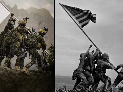 डेली मेल या संकेतस्थळाने दिलेल्या वृत्तानुसार तालिबानी योद्धे अमेरिकन रायफल बुलेट प्रुफ जॅकेट आणि नाईट व्हिजन गॉगल्स परिधान करून तालिबानचा झेंडा उचलताना दिसत आहेत. तालिबानीं दहशतवादी अमेरिकन रायफल, बुलेटप्रुफ जॅकेट आणि नाईट व्हिजन गॉगल्स परिधान करून तालिबानचा झेंडा उचलताना दिसत आहेत. तालिबानींचा हा फोटो अगदी त्या फोटोप्रमाणे आहे ज्यामध्ये १९४५ च्या इवो जीमा ल़ढाईमध्ये अमेरिकन सैनिक सुरिबाची पर्वतावर ध्वज फटकावताना दिसतात.
