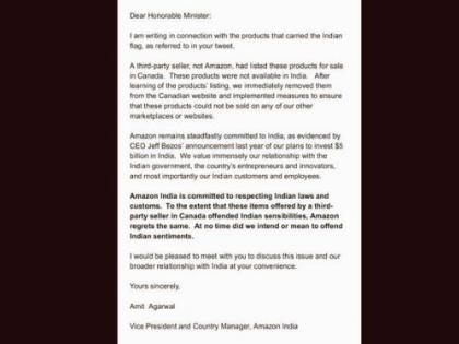 'भारतीयांच्या भावनांचा आम्ही आदर करतो, त्यांच्या भावना दुखावण्याचा आमचा हेतू नव्हता. त्या पायपुसण्या थर्ड पार्टीकडून विक्रीस ठेवण्यात आल्या होत्या'. असं पत्र अॅमेझॉनकडून सुषमा स्वराज यांना पाठवण्यात आलं आहे.