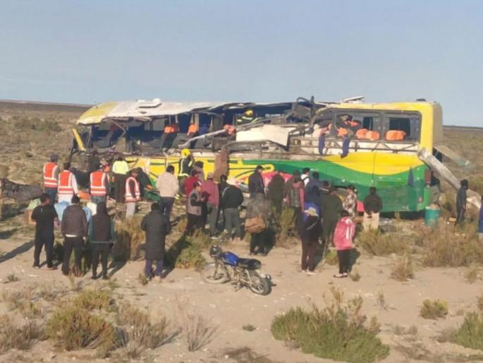 बोलिव्हियामध्ये भीषण अपघात झाला आहे. दोन बसची जोरदार धडक झाल्याने ३७ जणांचा मृत्यू झाला आणि ३० हून अधिक जण जखमी झाले. दोन प्रवासी बस समोरासमोर आदळल्याने हा अपघात झाला. उयुनी आणि कोलचानी दरम्यानच्या महामार्गावर पहाटेच्या सुमारास एक बस चुकीच्या लेनमध्ये गेल्याने हा अपघात झाला. अलिकडच्या काळात घडलेल्या सर्वात भयंकर अपघातांपैकी हा एक अपघात ठरला आहे.