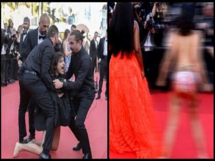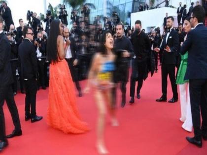 कान फिल्म फेस्टिवलमध्ये (Cannes 2022) रेड कार्पेटवर शुक्रवारी एक धक्कादायक घटना समोर आली. मीडिया रिपोर्ट्सनुसार, कार्यक्रमादरम्यान एका महिलेने यूक्रेनमध्ये (Woman strips off her clothes) होत असलेल्या रेप केसेस विरोधात संदेश देण्यासाठी आपले कपडे काढले होते. जॉर्ज मिलरचा सिनेमा 'थ्री थाउजंड इअर्स ऑफ लॉन्गिंग' च्या प्रीमिअर दरम्यान झालेल्या या घटनेमुळे तिथे उपस्थित सगळेच हैराण झाले होते.