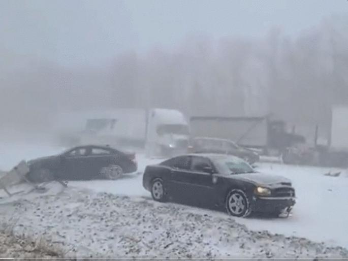 अमेरिकेच्या पेंसिवेनियामध्ये हायवेवर भीषण अपघात झाला आहे. बर्फ आणि वादळामुळे पुढचे काहीच न दिसल्याने एका मागोमाग एक अशा ६० गाड्या धडकल्या आहेत. काही गाड्यांना आगही लागली आहे. या अपघातात कमीतकमी ५ जणांचा मृत्यू झाला तर २४ हून अधिक लोक जखमी झाले आहेत. अशा प्रकारचे अपघात भारतातही होतात. यासाठी यमुना एक्स्प्रेस वे कुप्रसिद्ध आहे.