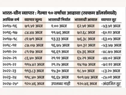 व्यापारात मात्र चिंताजनक स्थिती: राजकीय स्तरावर चर्चा सकारात्मक असली, तरी आर्थिक आघाडीवर स्थिती वेगळी आहे. गेल्या दहा वर्षांत भारत-चीनमधील व्यापार ७१ अब्ज डॉलर्सवरून ११७ अब्ज डॉलर्सपेक्षा जास्त वाढला आहे. मात्र, या काळात भारताची चीनला होणारी निर्यात जेमतेम दुप्पट झाली, तर चीनकडून होणारी आयात ६० टक्क्यांनी वाढली आहे. २०२३-२४ या आर्थिक वर्षात भारताने चीनकडून १०१.७४ अब्ज डॉलर्सची आयात केली, तर निर्यात फक्त १६.६५ अब्ज डॉलर्स इतकीच होती.