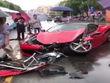 4.5 कोटींच्या फरारी कारचा पहिल्याच दिवशी चेंदामेंदा, महिलेचा व्हिडीओ व्हायरल