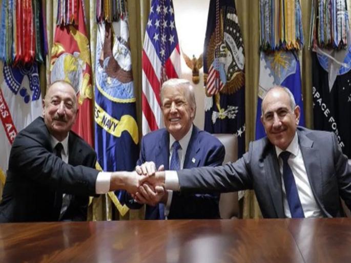 अमेरिकेचे राष्ट्राध्यक्ष डोनाल्ड ट्रम्प यांनी आर्मेनिया आणि अझरबैजानमधील ३७ वर्षांचे युद्ध संपवले आहे. गेल्या अनेक दिवसांपासून ते याचा प्रयत्न करत होते. शुक्रवारी ट्रम्प यांनी व्हाईट हाऊसमध्ये दोन्ही देशांच्या नेत्यांची भेट घेतली. आर्मेनियाचे पंतप्रधान निकोल पशिन्यान आणि अझरबैजानचे अध्यक्ष इल्हम अलीयेव यांनी व्हाईट हाऊसमध्ये अधिकृत शांतता करारावर स्वाक्षरीही केली. ट्रम्प यांनी यापूर्वी जगभरातील ६ युद्धे थांबवल्याचा दावा केला आहे.