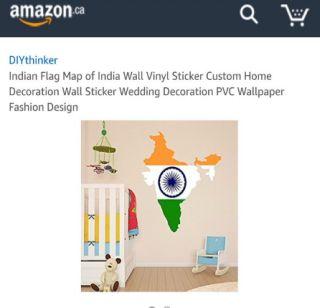 नवी दिल्ली, दि. 9 - अॅमेझॉन या ई-कॉमर्स वेबसाइटने पुन्हा एकदा भारतीय राष्ट्रध्वजाचा अपमान केल्याचा आरोप करण्यात आला आहे. तसेच अॅमेझॉनच्या वेबसाइटवर विक्रीसाठी असलेल्या स्टिकरमध्ये भारताचा काही हिस्सा पाकिस्तान आणि चीनमध्ये असल्याचं दाखवण्यात आला आहे.