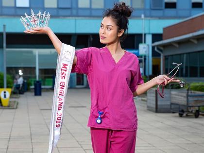 Coronavirus : डोक्यावरचा मुकुट काढून रुग्णांवर उपचार करतेय ही 'मिस इंग्लंड', असे आहे तिचे 'इंडियन कनेक्शन'