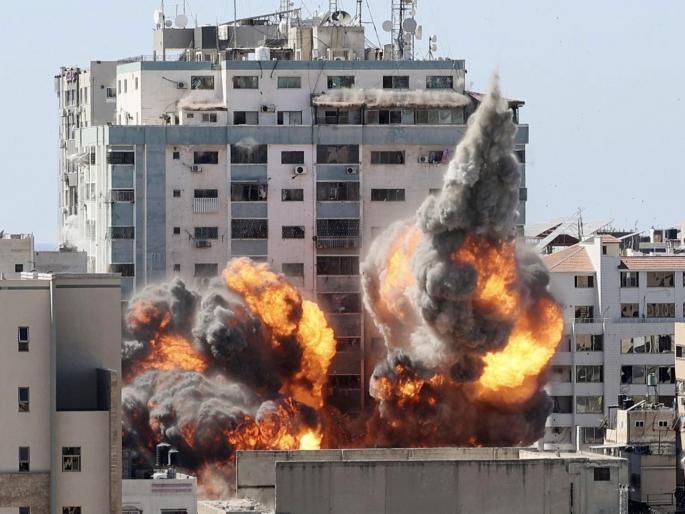 इस्त्रायली लढाऊ विमानांनी पुन्हा एकदा गाझा शहरावर बॉम्ब हल्ला केला आहे. सोमवारी सकाळी इस्त्रायकडून गाझा पट्टीतील विविध ठिकाणी दहा मिनिटं बॉम्ब डागण्यात आले. समोर आलेल्या माहितीनुसार इस्रायलच्या लढाऊ विमानांनी गाझा पट्टीत निरनिराळ्या ठिकाणी मोठ्या प्रमाणात एअर स्ट्राईक केला. सोमवारी सकाळी शहराच्या दक्षिण भागात दहा मिनिटं सातत्यानं बॉम्ब डागण्यात आले. हा एअरस्ट्राईक २४ तासांपूर्वी करण्यात आलेल्या एअरस्ट्राईकपेक्षाही मोठा असल्याचं सांगण्यात येत आहे. यापूर्वी केलेल्या एअरस्ट्राईकमध्ये ४२ पॅलेस्टीनी नागरिकांचा मृत्यू झाला होता. दरम्यान, इस्रायलच्या डिफेन्स फोर्सनं आपल्या दिलेल्या वक्तव्यात IDF फायटर जेट्स गाझा पट्टीतील दशतवाद्यांच्या ठिकाणांना लक्ष्य करत असल्याचं म्हटलं. इस्रायल आणि पॅलेस्टाईन यांच्यात सुरू असलेल्या हिंसक संघर्षादरम्यान गाझा पट्टीत इस्रायलनं रविवारी मोठ्या प्रमाणात बॉम्बचा वर्षाव केला होता. या हवाई हल्ल्यात ४२ पॅलेस्टीनी नागरिकांचा मृत्यू झाल्याची आणि अनेक जण जखमी झाल्याची माहिती समोर आली होती. यामध्ये काही इमारतींचंही मोठं नुकसान झालं होतं. इस्रायल आणि पॅलेस्टाइनमधील भीषण संघर्ष अद्यापही सुरु आहे. अशातच इस्रायली सैन्याने गाझावर केलेल्या भीषण हल्ल्यात हमासच्या प्रमुख नेत्याचे घर उद्ध्वस्त झाल्याची माहिती रविवारी समोर आली होती. (israel palestine clash israeli army targets home of top hamas leader in gaza) इस्रायलच्या लढाऊ विमानांद्वारे हवाई हल्ले सुरूच आहेत. तर, हमासदेखील सातत्याने रॉकेट हल्ला करत आहे. हमासने सुमारे २ हजार रॉकेट डागले असल्याचा दावा इस्रायलने केला होता. यापूर्वी करण्यात आलेल्या हल्ल्यात हमासच्या प्रमुख नेत्याचे घर उद्ध्वस्त झाल्याची माहिती इस्रायली सैन्याकडून देण्यात आली होती. सेना प्रवक्ते ब्रिगेडियर जनरल हिदाई जिल्बरमॅन यांनी यासंदर्भातील माहिती इस्रायली रेडिओला दिली. मीडिया ऑफिसेसचे मोठे नुकसानइस्त्रायलने केलेल्या हवाई हल्ल्यात गाझामधील असोसिएट प्रेस, अल जझीरासह अन्य मीडिया ऑफिसेसचे मोठे नुकसान झाले आहे. मीडिया ऑफिसेसची बिल्डिंग इस्त्रायलच्या हल्ल्यात अक्षरश: उद्ध्वस्त झाली. इस्रायलच्या सैन्याने गाझा शहरातील काही बिल्डिंग रिकाम्या करण्याबाबत इशारा दिला होता. याच परिसरात असोसिएट प्रेस आणि इतर मीडियाच्या बिल्डिंग आहेत. त्यानंतर तासाभरात याठिकाणी इस्रायलने एअर स्ट्राईक केला. या हल्ल्यात १२ मोठ्या बिल्डिंग उद्ध्वस्त झाल्या.