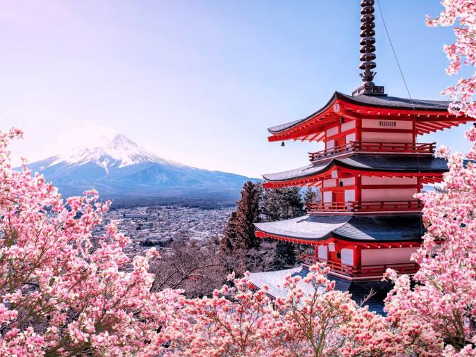 जपानमधला माउंट फूजी संपूर्ण जगात त्याच्या सौंदर्यासाठी ओळखला जातो. वसंत ऋतूत जेव्हा चेरी ब्लॉसम फुलतात, तेव्हा इथली रौनक पाहण्यासारखी असते.