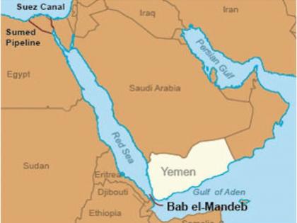 बाब-अल-मंदेब सामुद्रधुनीला अश्रूंचे द्वार म्हणून ओळखले जाते. ही सामुद्रधुनी येमेन आणि जिबूती/इरिट्रिया (आफ्रिका) यांच्यामध्ये असलेला २० ते ३० किमी रुंदीचा मोठा जलमार्ग आहे. लालसागराला अदानच्या खाडीशी आणि हिंद महासागराला हा मार्ग जोडतो.