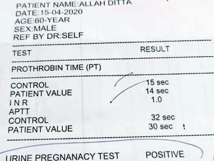 अल्ला बिट्टा नावाचा हा व्यक्ती खानेवालच्या सरकारी हॉस्पिटलमध्ये उपचारासाठी आला होता. त्याला युरीन टेस्ट करण्यास सांगण्यात आले. यामुळे तो खासगी लॅबमध्ये युरीन टेस्ट करण्यासाठी गेला होता. मात्र, जेव्हा त्याचा रिपोर्ट आला तेव्हा धक्काच बसला. या रिपोर्टमध्ये त्याला प्रेग्नंट असल्याचे म्हटले होते.