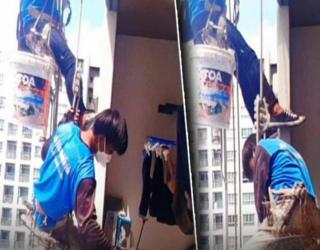 VIDEO : ३२व्या मजल्यावर खिडकीची दुरूस्ती करत होते वर्कर्स, रागावलेल्या महिलेने कापला दोर आणि...