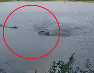 VIDEO: नदीत पोहणाऱ्या तरुणाच्या मागे लागली मगर, किनाऱ्यावर पोहचण्यापूर्वीच...