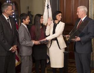 अमेरिका - सीमा वर्मा यांनी भगवदगीतेवर हात ठेवून घेतली शपथ