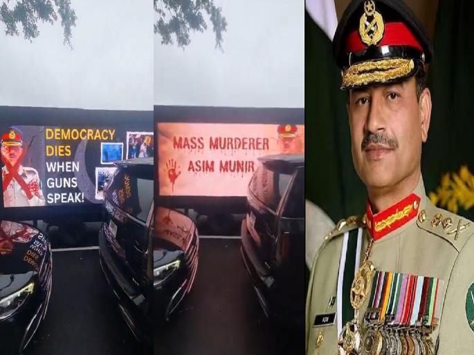 मिळालेल्या माहितीनुसार, रविवारी (१५ जून २०२५) पाच दिवसांच्या अधिकृत अमेरिका दौऱ्यावर पोहोचलेल्या असीम मुनीरसाठी अतिशय लाजिरवाणी परिस्थिती ओढवली. त्याच्याच देशातील लोकांनी रस्त्यावर उतरुन उघडपणे मुनीरचा विरोध केला आणि त्याला हुकूमशहा, भित्रा म्हटले. सोशल मीडिया प्लॅटफॉर्म X वर याचे अनेक व्हिडिओही व्हायरल होत आहेत. यामध्ये अमेरिकेत राहणारे पाकिस्तानी नागरिक असीम मुनीरच्या हॉटेलबाहेर घोषणाबाजी करताना दिसत आहेत.