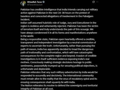 Pakistan has credible intelligence that India intends carrying out military action against Pakistan in the next 24-36 hours on the pretext of baseless and concocted allegations of involvement in the Pahalgam incident.