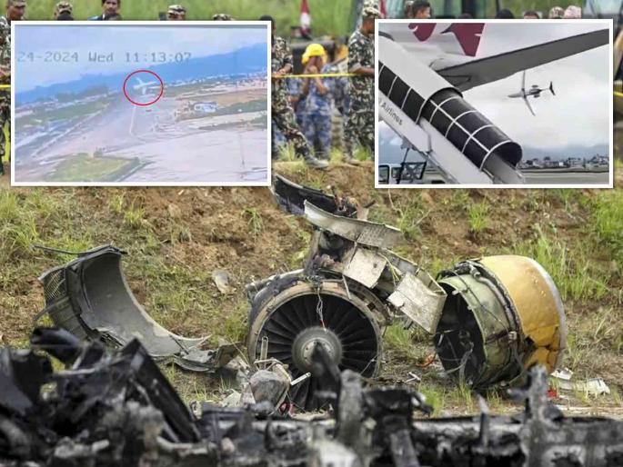 नेपाळची राजधानी काठमांडू येथे विमान कोसळले आहे. विमानातील १९ जणांपैकी १८ जणांचा मृत्यू झाला. जखमी पायलट कॅप्टन एम. शाक्य यांना गंभीर अवस्थेत रुग्णालयात दाखल करण्यात आले आहे. हे विमान काठमांडूहून पोखराला जात होते. सकाळी ११ वाजता त्रिभुवन विमानतळावरून विमानाने उड्डाण केले आणि काही क्षणातच ते कोसळले. 9N-AME हे विमान सौर्य एअरलाइन्सचे होते. या दुर्घटनेत मृत्युमुखी पडलेल्यांपैकी १७ जण सूर्या एअरलाइन्सचे कर्मचारी होते, तर उर्वरित २ क्रू मेंबर्स होते.