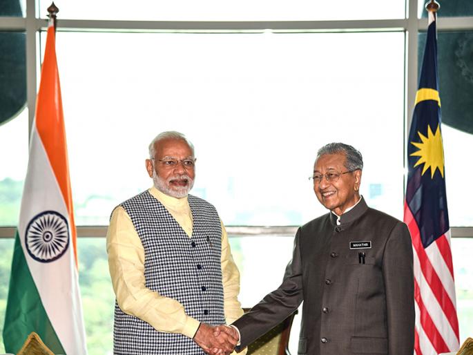 क्वालालंपूर- तीन देशांच्या दौऱ्यावर असणाऱ्या पंतप्रधान नरेंद्र मोदी यांनी आज काही वेळासाठी मलेशियाला भेट दिली. मलेशियात नुकतेच निवडून आलेले पंतप्रधान महाथिर महंमद यांची त्यांनी भेट घेऊन चर्चा ही केली. महाथिर महंमद हे जगातील सर्वात वयोवृद्ध निर्वाचित पंतप्रधान आहेत. क्वालालंपूर येथे उतरल्यावर पुत्रजया येथे पेर्देना पुत्र कॉम्प्लेक्स येथे जाऊन पंतप्रधान नरेंद्र मोदी यांनी महाथिर महंमद यांची भेट घेतली. महाथिर यांचे अभिनंदन केल्यानंतर उपपंतप्रधान वॅन अझिझा यांची भेट त्यांनी घेतली. मलेशियामध्ये आपले स्वागत केल्याबद्दल महाथिर यांचे आभार मानणारे ट्वीटही पंतप्रधान नरेंद्र मोदी यांनी केले. त्यानंतर ते सिंगापूरसाठी रवाना झाले.