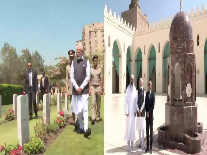 शहिदांना वाहिली श्रद्धांजलीयानंतर पंतप्रधान मोदींनी हेलिओपोलिस कॉमनवेल्थ वॉर ग्रेव्ह येथील युद्ध स्मारकाला भेट दिली आणि पहिल्या महायुद्धात बलिदान देणाऱ्या भारतीय जवानांना श्रद्धांजली वाहिली. पहिल्या महायुद्धात इजिप्त आणि पॅलेस्टाईनमध्ये शहीद झालेल्या 4000 भारतीय सैनिकांचे स्मारक म्हणून हे स्मारक ओळखले जाते.