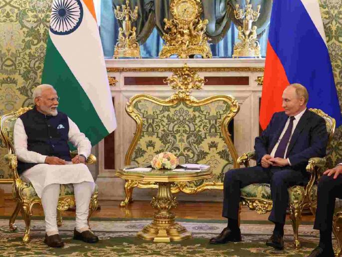 PM Narendra Modi Vladimir Putin meeting talks: पंतप्रधाननरेंद्र मोदी दोन दिवसांच्या रशिया दौऱ्यावर आहेत. मॉस्कोमध्ये मोदींचे रशियन राष्ट्राध्यक्ष पुतीन यांनी जोरदार स्वागत केले. पीएम मोदींची भेट घेतल्यानंतर पुतिन यांनी त्यांना मिठी मारली. यानंतर मोदी आणि पुतीन यांनी अनौपचारिक गप्पा मारल्या. त्यानंतर आज दोघांमध्ये द्विपक्षीय चर्चा झाली. "बॉम्ब, बंदुका आणि गोळ्यांनी शांतता चर्चा यशस्वी होत नाहीत, संवादातूनच शांततेचा मार्ग निघेल," असे पंतप्रधान मोदींनी भारत-रशिया मैत्रीबद्दल बोलताना विधान केले.