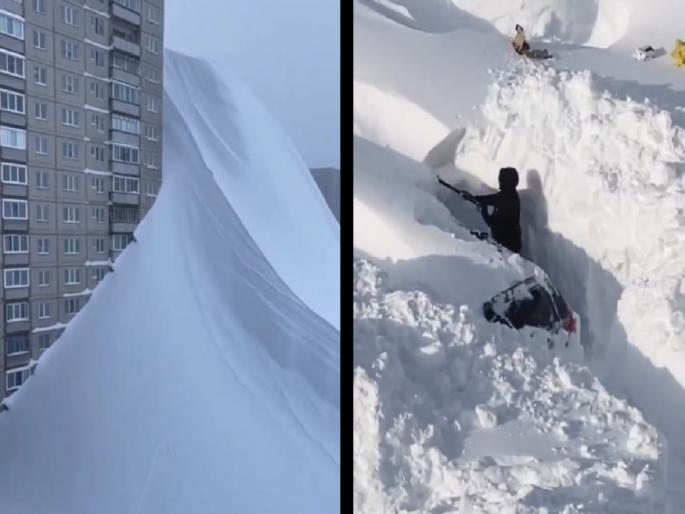 सोशल मीडियावर व्हायरल झालेल्या अनेक व्हिडीओंमध्ये नागरिक बर्फात उतरुन फावड्याने बर्फ खोदून घराबाहेर येताना दिसत आहेत. एका व्हिडीओमध्ये तर एक व्यक्ती तब्बल 5 मीटर जाड बर्फाखालून आपली कार बाहेर काढताना दिसतो.