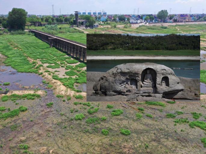 स्टेट मीडिया जिनहुआच्या एका रिपोर्टनुसार यांग्झी नदी कोरडी पडत आहे. त्यामुळे चीनमधील दक्षिण-पश्चिमेस असलेल्या चोंगक्विनमधील एक बेट जे आधी बुडालेले होते ते आता पाण्याबाहेर आले आहे. त्याबरोबरच भगवान गौतम बुद्धांच्या तीन मूर्तीही समोर आल्या आहेत.