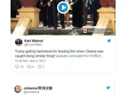 विशेष म्हणजे डोनाल्ड ट्रम्प माशांना द्यायच्या खाद्याचा डबा तलावात रिकामी करत असताना रेक्स टिलरसन यांना हसू आवरत नव्हते. या प्रकारानंतर डोनाल्ड ट्रम्पसुद्धा ट्विटर ट्रोल झाले आहेत.