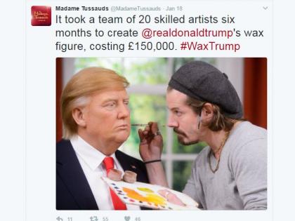मादाम तुसाँच्य़ा ट्विटरवर डोनाल्ड ट्रम्प यांच्या पुतळ्याचा फोटो शेअर करण्यात आला आहे. 20 कलाकारांनी सहा महिन्यात हा पुतळा साकारला आहे.
