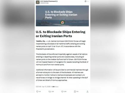 अमेरिकेच्या सेंट्रल कमांडने (CENTCOM) घोषणा केली आहे की, १३ एप्रिलला सकाळी १० वाजता म्हणजे भारतीय वेळेनुसार संध्याकाळी ७:३० वाजता इराणच्या बोटींची नाकेबंदी सुरू केली जाईल. CENTCOM ने म्हटले आहे की, इराणच्या बंदरांमध्ये आणि किनारी भागांमध्ये येणाऱ्या-जाणाऱ्या सर्व देशांच्या जहाजांवर ही नाकेबंदी सरसकट लागू केली जाईल. एका सोशल मीडिया पोस्टमध्ये, अमेरिकेच्या सेंट्रल कमांडने (CENTCOM) म्हटले आहे की, राष्ट्राध्यक्षांच्या घोषणेनुसार अमेरिकन सैन्य इराणच्या बंदरांमध्ये येणाऱ्या-जाणाऱ्या सर्व सागरी वाहतुकीवर नाकेबंदी लागू करण्यास सुरुवात करेल. ही नाकेबंदी इराणची बंदरे आणि किनारी भागांचा वापर करणाऱ्या सर्व देशांच्या जहाजांवर लागू केली जाईल. त्यात अरबी आखात आणि ओमानच्या आखातातील सुविधांचाही समावेश असेल."