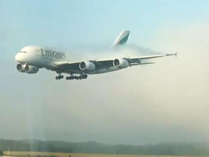 लंडन : ब्रिटनमध्ये गुरुवारी दुबईच्या एमिरेट्सच्या विमानाने थरारक लँडिंग केले आहे. रनवेपासून कमी उंचीवर ढग असताना विमानाच्या पायलटने ढगातून येत विमान सुखरूप रनवेवर उतरविले आहे.