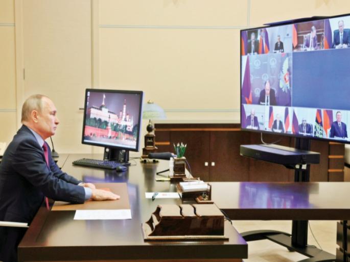 पुतीन यांचे ताजे छायाचित्र झळकलेव्लादिमीर पुतीन हे सोमवारी व्हिडीओ कॉन्फरन्सद्वारे सहकाऱ्यांशी संवाद साधत असताना त्यांचे काढलेले छायाचित्र सोशल मीडियावर झळकले आहे. पुतीन यांची प्रकृती ठणठणीत असल्याचे या छायाचित्रातून रशियाला सर्वांच्या मनावर बिंबवायचे आहे.