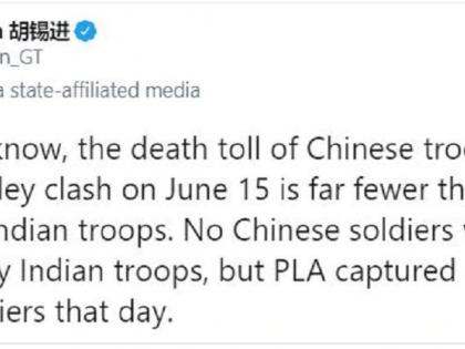 ग्लोबल टाइम्सचे मुख्य संपादक हू झिजिन यांनी भारताचे संरक्षण मंत्री राजनाथ सिंह यांचे एक विधान ट्विट करून सांगितले की, गलवान खोऱ्यात झालेल्या झटापटीत चीनचे सैनिक मारले गेले होते. मात्र माझ्या माहितीप्रमाणे या झटापटीत मृत्युमुखी पडलेल्या चिनी सैनिकांचा आकडा हा भारताच्या मृत्युमुखी पडलेल्या सैनिकांपैक्षा कमी होता. एवढेच नाही तर चीनच्या कुठल्याही सैनिकाला भारताने बंदी बनवले नव्हते. उलट चीननेच भारताच्या काही सैनिकांना ताब्यात घेतले होते.