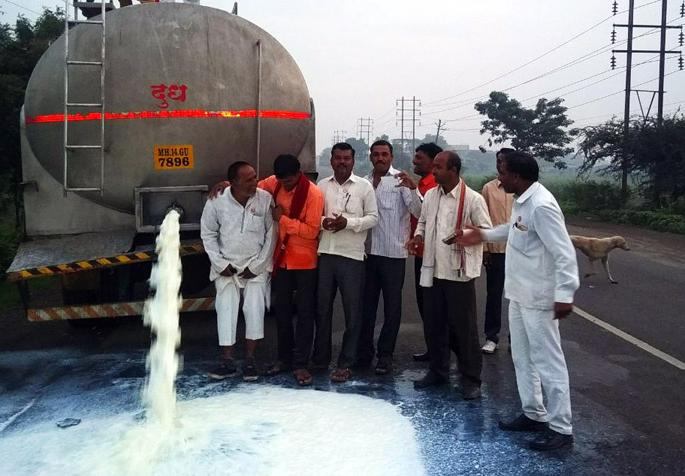 स्वाभिमानी संघटनेने दूध रस्त्यावर फेकले