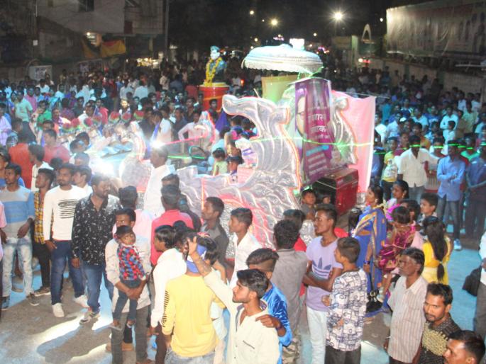 लोकमत न्यूज नेटवर्कजालना : उध्दरली कोटी कुळे भीमा तुझ्या जन्मामुळे.., कसा शोभून दिसतोय टाय अन् कोटावर.., सुज्ञानाचा निर्मळ झरा.. भीमा सारखा माणूस खरा जन्मा येईल काय... सांगा माझ्या भीमरायावाणी कोणी पुढारी होईल का.. आदी एका पेक्षा एक सरस गाण्यांनी रविवारी डॉ. बाबासाहेब आंबेडकर जयंतीच्या मिरवणुकीत उत्साह संचारला होता.रविवारी सकाळपासूनच मस्तगड येथील डॉ. बाबासाहेब आंबेडकर पुतळा परिसरात आंबेडकरप्रेमी जनतेने मोठी गर्दी केली होती. यावेळी नगराध्यक्षा संगीता गोरंट्याल यांनी आंबेडकरांच्या पुतळ्यास पुष्पहार अर्पण केला. यावेळी माजी आ. कैलास गोरंट्याल तसेच शेख महेमूद, रमेश देहडकर, मधुकर घेवंदे, दिनकर घेवंदे, अॅड. ब्रह्मानंद चव्हाण, अॅड. बी.एम.साळवे, संजय खोतकर, सुधाकर निकाळजे, अॅड. शिवाजी आदमाने, पिंटू रत्नपारखे, सुनील साळवे, अरूण मगरे, राजेंद्र जाधव, राहुल रत्नपारखे, संदीप खरात, योगेश रत्नपारखे व अन्य मान्यवरांची उपस्थिती होती.सकाळी परिसरात निळे झेंडे आणि ढोलताशांनी परिसरात उत्साही वातावरण होते. अनेकांनी एकमेकांना भेटून डॉ. बाबासाहेब आंबेडकर जयंतीच्या एकमेकांना शुभेच्छा दिल्या. नवीन आणि जुना जालना भागातून युवकांनी सकाळपासूनच डीजेच्या तालावर भव्य मिरवणुका काढल्या होत्या. सायंकाळी काढण्यात आलेल्या मिरवणुकीत युवकां प्रमाणेच महिला आणि युवतींचा लक्षणीय सहभाग सर्वांचे लक्ष वेधून घेत होता.डॉ. बाबासाहेब आंबेडकर जयंतीनिमित्त नालंदा बहुउद्देशीय संस्थेच्या वतीने विद्यार्थ्यांसाठी एक आगळावेगळा उपक्रम हाती घेतला. सलग १८ तास अभ्यास करण्यात आला. यावेळी मोठ्या प्रमाणावर विद्यार्थ्यांची उपस्थिती असल्याची माहिती भास्कर शिंदे यांनी दिली.३० वाहनांचा सहभाग : देखाव्यांनी वेधले लक्षडॉ. बाबासाहेब आंबेडकर जयंतीनिमित्त काढण्यात आलेल्या मुख्य मिरवणुकीमध्ये ३० पेक्षा अधिक वाहनांचा सहभाग होता. तर शहराच्या विविध भागांतून काढण्यात आलेल्या मिरवणुकीमध्ये डॉ. बाबासाहेब आंबेडकरांच्या जीवनावर आधारित सजीव देखावे सादर करण्यात आले होते.शहरातील मुथा बिल्डिंग येथे भव्य कार्यक्रमाचे आयोजन करण्यात आले होते. त्यावेळी मोठ्या पडद्यावर डॉ. बाबासाहेब आंबेडकरांचा जीवनपट उलगडून दाखविण्यात येत होता. याचेळी विशेष लेझर शो आणि आकर्षक विद्युत रोषणाईने परिसर उजळून गेला होता. मिरवणुकीसाठी कडेकोट पोलीस बंदोबस्त होता.स्वयंसेवी संस्थांची मदतडॉ. बाबासाहेब आंबेडकर जयंतीनिमित्त काढण्यात आलेल्या मिरवणुकीत सहभागी झालेल्यांना चौका-चौकामध्ये पिण्याचे थंड पाणी तसेच चहापानाची व्यवस्था करण्यात आली होती. अनेक युवकांनी आपल्या मोटार सायकलींना मोठमोठे निळे झेंडे लावून सकाळी मोटारसायकल रॅ