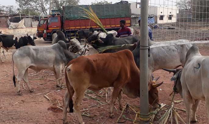 दोन ट्रकमधून जाणारी गुरे पकडली