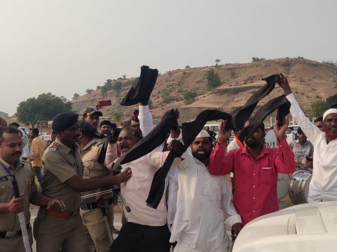 यामुळे शासनाने बंद केलेली अल्पसंख्यांक समाजातील पहिली ते आठवीच्या विद्यार्थ्यांची शिष्यवृत्ती पूर्ववत सुरू करावी, महापुरुषांबाबत आक्षेपार्ह वक्तव्य करणाऱ्या वाचाळवीरांवर कारवाई करावी, आदी मागण्यांसाठी अखिल भारतीय किसान काँग्रेसचे जिल्हाध्यक्ष नारायण वाढेकर, तालुकाध्यक्ष शिवाजी गायकवाड, शेतकरी रतन शिंदे, असंघटित कामगार काँग्रेस जिल्हाध्यक्ष शेख शमशोद्दीन, जिल्हा सचिव गौतम लांडगे, आदींनी मुख्यमंत्री, उपमुख्यमंत्र्यांच्या ताफ्याला काळे झेंडे दाखविले. यामुळे प्रशासनाचीही धावपळ उडाली होती.