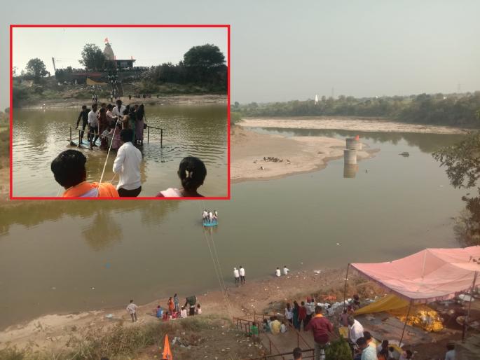 Web Summary : जालना में महाशिवरात्रि पर संगमेश्वर मंदिर जाने के लिए हजारों श्रद्धालुओं ने राफ्ट से नदी पार की। प्रशासन की लापरवाही के बीच स्वयंसेवकों ने राफ्ट की व्यवस्था की। भक्तों ने बिना सरकारी मदद के खतरनाक यात्रा की।