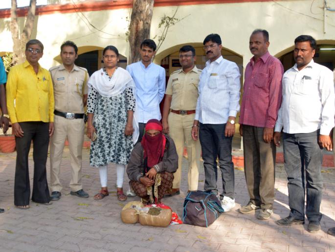 शहरातील रामतीर्थ पुलावरून दु:खीनगरकडे जाणा-या रस्त्याने एक महिला बॅगेत गांजा घेऊन जाणार असल्याची माहिती उपविभागीय पोलीस अधिकारी सचिन बारी यांना मिळाली होती. त्यानुसार त्यांच्या पथकाने दु:खीनगरकडे जाणा-या रस्त्यावर सापळा लावला. संशयित महिला सेर सवार दर्गाजवळ आल्यानंतर पोलिसांनी चौकशी केली. तसेच तिच्याकडील बॅगेची झडती घेतली. बॅगेत दोन पॅक केलेल्या गठ्ठ्यांमध्ये गांजा आढळून आला. मूळ जालना येथील रहिवासी असलेल्या या महिलेने हा गांजा बुलडाणा जिल्ह्यातील चिखलीहून आणला होता. पोलिसांनी पंचनामा करून गांजा जप्त केला असून, या प्रकरणी आणखी काही जणांवर कारवाईची शक्यता आहे. महिलेवर कदीम जालना ठाण्यात गुन्हा दाखल करण्यात आला. वरिष्ठ अधिका-यांच्या मार्गदर्शनाखाली उपविभागीय अधिकारी सचिन बारी, सहायक उपनिरीक्षक रामदास काकडे, संजय कटके, कल्याण आटाळे, अनिल काळे, देवा जाधव, महिला कर्मचारी बांडे, दादाराव चव्हाण, हरुन पठाण, देवाशिष वर्मा, पूनम सुलाने यांनी ही कारवाई केली.