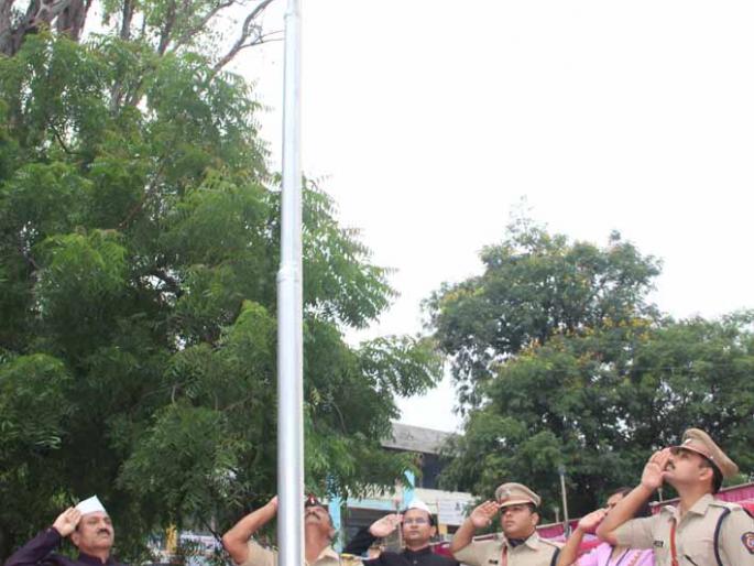 लोकमत न्यूज नेटवर्कजालना : मराठवाडा मुक्तिसंग्राम दिनाच्या ७१ व्या वर्धापन दिनानिमित्त टाऊन हॉल येथील स्मृती स्तंभास पुष्पचक्र वाहून पाणी पुरवठा व स्वच्छता मंत्री तथा पालकमंत्री बबनराव लोणीकर यांनी हुतात्म्यांना आदरांजली अर्पण करुन अभिवादन केले. यावेळी पोलिसांनी हवेत बंदुकीच्या तीन फेरी झाडून हुतात्म्यांना मानवंदना दिली.शहरातील टाऊन हॉल जवळच्या मराठवाडा मुक्तिसंग्राम स्मृती स्तंभास मंगळवारी मुख्य शासकीय ध्वजवंदना आणि हुतात्म्यांना आदरांजली अर्पण करण्याचा कार्यक्रम पालकमंत्री बबनराव लोणीकर यांच्या उपस्थितीत पार पडला. यावेळी पालकमंत्री लोणीकर यांनी मार्गदर्शन केले.या कार्यक्रमास आ. राजेश टोपे, जि.प. अध्यक्ष अनिरुद्ध खोतकर, जि.प. उपाध्यक्ष सतीश टोपे, नगराध्यक्षा संगीता गोरंट्याल, उपाध्यक्ष राजेश राऊत, माजी आ. अरविंद चव्हाण, भास्कर दानवे, रामेश्वर भांदरगे, नागोजी सतकर, ब्रह्मानंद चव्हाण, एकबाल पाशा, जिल्हाधिकारी रवींद्र बिनवडे, पोलीस अधीक्षक एस. चैतन्य, मुख्य कार्यकारी अधिकारी निमा अरोरा, निवासी उपजिल्हाधिकारी गणेश निºहाळी, उपजिल्हाधिकारी शर्मिला भोसले, उपजिल्हाधिकारी (निवडणूक) दीपाली मोतियाळे, उपजिल्हाधिकारी प्रदीप कुलकर्णी, तहसीलदार संतोष बनकर यांच्यासह स्वातंत्र्य सैनिक, पदाधिकारी, अधिकारी, कर्मचारी, व नागरिक मोठ्या संख्येने उपस्थित होते.याप्रसंगी स्वातंत्र्य सैनिक रामेश्वरजी दायमा, तुळशीराम काळे, मंगलाबाई गिंदोडीया, इंदिराबाई तांबटकर, राणीरक्षा अब्दुल अजीज खॉ, अजीम खान, सुभद्राबाई शंकरराव देशमुख, कांताबाई विश्वंभर मिटकर, जयाबाई खांडेराव खलसे, कौशल्याबाई खरात, चांदबाई माणिकचंद कटारिया, प्रभावती गजानन जोशी यांचा पालकमंत्र्यांच्या हस्ते शाल व पुष्पगुच्छ देऊन सत्कार करण्यात आला. यावेळी मान्यवरांनी लोकमान्य बाळ गंगाधर टिळक यांच्या पुतळ््यास पुष्पहार अर्पण करुन अभिवादन केले.