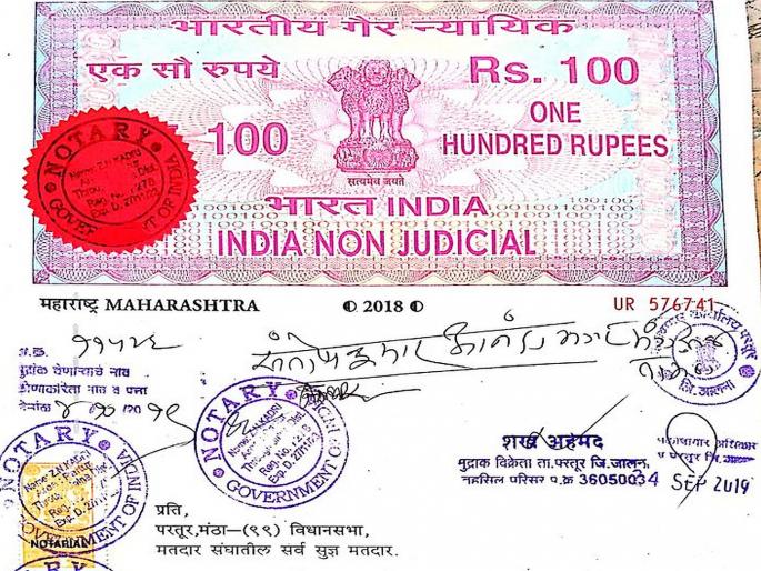 परतूरः जालना जिल्ह्यातील परतूर मंठा विधानसभा मतदारसंघात सुशिक्षित बेरोजगार आम आदमी पक्षाचे उमेदवार संतोष मगर यांनी 100 रुपयांच्या बॉण्डवर आगळावेगळा निवडणूक जाहीरनामा प्रसिद्ध केला. या जाहीरनाम्याचीच राजकीय वर्तुळात चर्चा आहे. निवडणुकीत अनेक उमेदवार जनतेला खोटी आश्वासने देऊन निवडून येतात व निवडून आल्यानंतर दिलेली वचने विसरतात.तसेच मतदारसुद्धा उमेदवार यांनी दिलेली आश्वासने विसरून जातात. पण परतूर मंठामधून मी आम आदमी पार्टीचा उमेदवार संतोषकुमार आनंदा मगर निवडणूक लढवत आहे. माझा निवडणूक जाहीरनामा बॉण्डवर नोटरी करून जनतेला देत आहे, जर ते पूर्ण न केल्यास मी जनतेला माझ्यावर फसवणुकीचा गुन्हा दाखल करण्याचा अधिकार देत आहे. अशा जाहीरनाम्यामुळे आम आदमी पक्षाचे नेते उमेदवार संतोष मगर चर्चेत आले आहेत. तसेच दिलेल्या आश्वासनांची पूर्तता न केल्यास नागरिकांना याेग्य ती कारवाई करण्याचा अधिकार देखील त्यांनी मतदारांना दिला आहे. विधानसभेच्या निवडणुका येत्या 21 ऑक्टाेबर राेजी हाेत आहेत. त्यासाठी आता सर्वच पक्षांनी कंबर कसली आहे.निवडणुकीच्या वेळी विविध राजकीय पक्ष तसेच उमेदवार मतदारांना माेठमाेठी आश्वासने देत असतात. परंतु अनेकदा ती आश्वासने निवडणुकांपूर्तीच मर्यादित राहतात. निवडणुका झाल्यावर त्या आश्वासनांची पूर्तता केली जात नाही. त्यामुळे नेते केवळ आश्वासने देतात परंतु त्याची पूर्तता करत नाहीत, असा समज मतदारांमध्ये झालेला असताे. हा समज खाेडून काढण्यासाठी मगर यांनी थेट आपला जाहीरनामा शपथपत्रावर लिहून दिला आहे. या जाहीरनाम्यात त्यांनी विविध 11 आश्वासने दिली आहेत. निवडून आल्यावर ती पूर्ण न केल्यास फसवणूक केल्याची कायदेशीर कारवाई करण्याचा अधिकार त्यांनी मतदारांना दिला आहे.