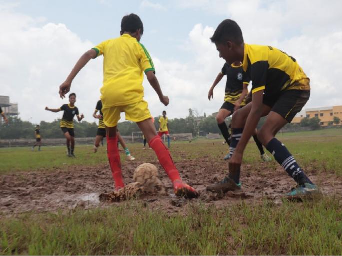 जालना : जिल्हा क्रीडाधिकारी कार्यालयाच्या वतीने येथील जिल्हा क्रीडा संकुलावर गुरूवारपासून १४ आणि १७ वयोगटातील मुला, मुलींच्या औरंगाबाद विभागीय सुब्रोतो मुखर्जी फुटबॉल स्पर्धा घेतल्या जात आहेत. या स्पर्धेत संघाला विजयी करण्यासाठी मैदानावरील चिखल तुडवितच खेळाडूंना कसब पणाला लावावे लागत आहे. विशेषत: गोलकिपरची भूमिका पार पाडणाऱ्या खेळाडूला चिखलात उभारल्यानंतर गोल रोखायचा की स्वत:चा बचाव करायाचा असाच प्रश्न पडत असल्याची व्यथा काही खेळाडूंनी व्यक्त केली.